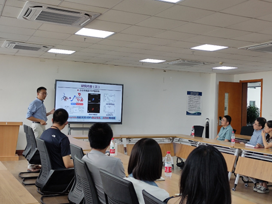 报告中,滕鹏研究员详细介绍了多肽药物发展简史、基于非天然氨基酸骨架设计的小分子类肽模拟物的设计思路和存在的优势、小分子抗菌肽的设计合成及其作用机制,同时分享了团队研究靶向蛋白降解药物过程中的体会和经验。报告会后,滕鹏研究员同与会师生就相关科学问题进行了深入地讨论和交流。