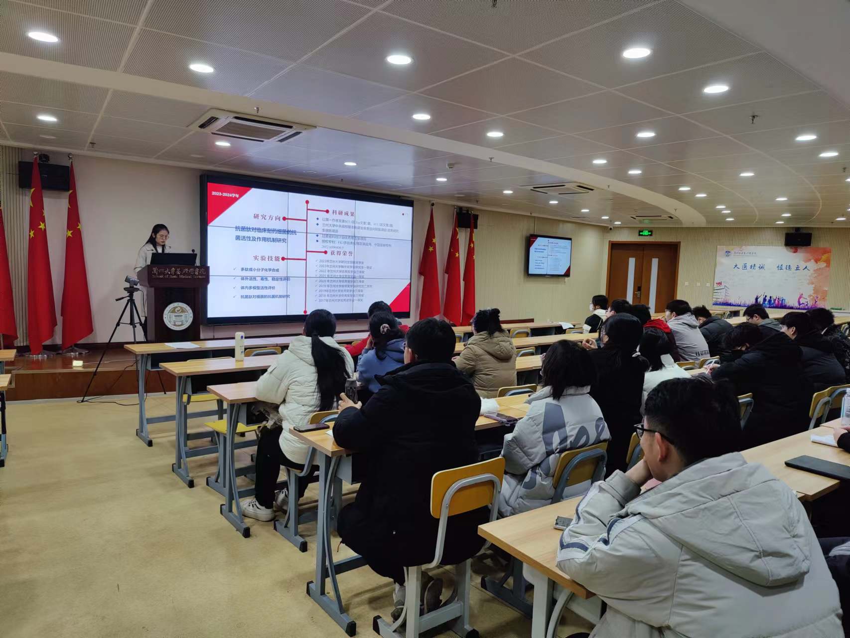 为进一步拓展研究生学术视野,增强科研热情,推进不同学科同学间的交流合作,营造良好的学术研究氛围,提升学院整体科研水平与研究热情,基础医学院第十六届学术年会之“英才荟萃”分享活动于2024年1月5日在兰州大学基础医学院一楼报告厅举行。本次活动秉持相互交流、共同进步的方针,鼓励学生积极展示、主动学习、创新实践,为各位研究生交流合作提供一个合适的平台。在本次分享会上,基础医学院邀请了本院六位荣获今年国家奖学金的同学。第一场分享会在2024年1月5日上午9:30于医学实验大楼一楼报告厅举行。