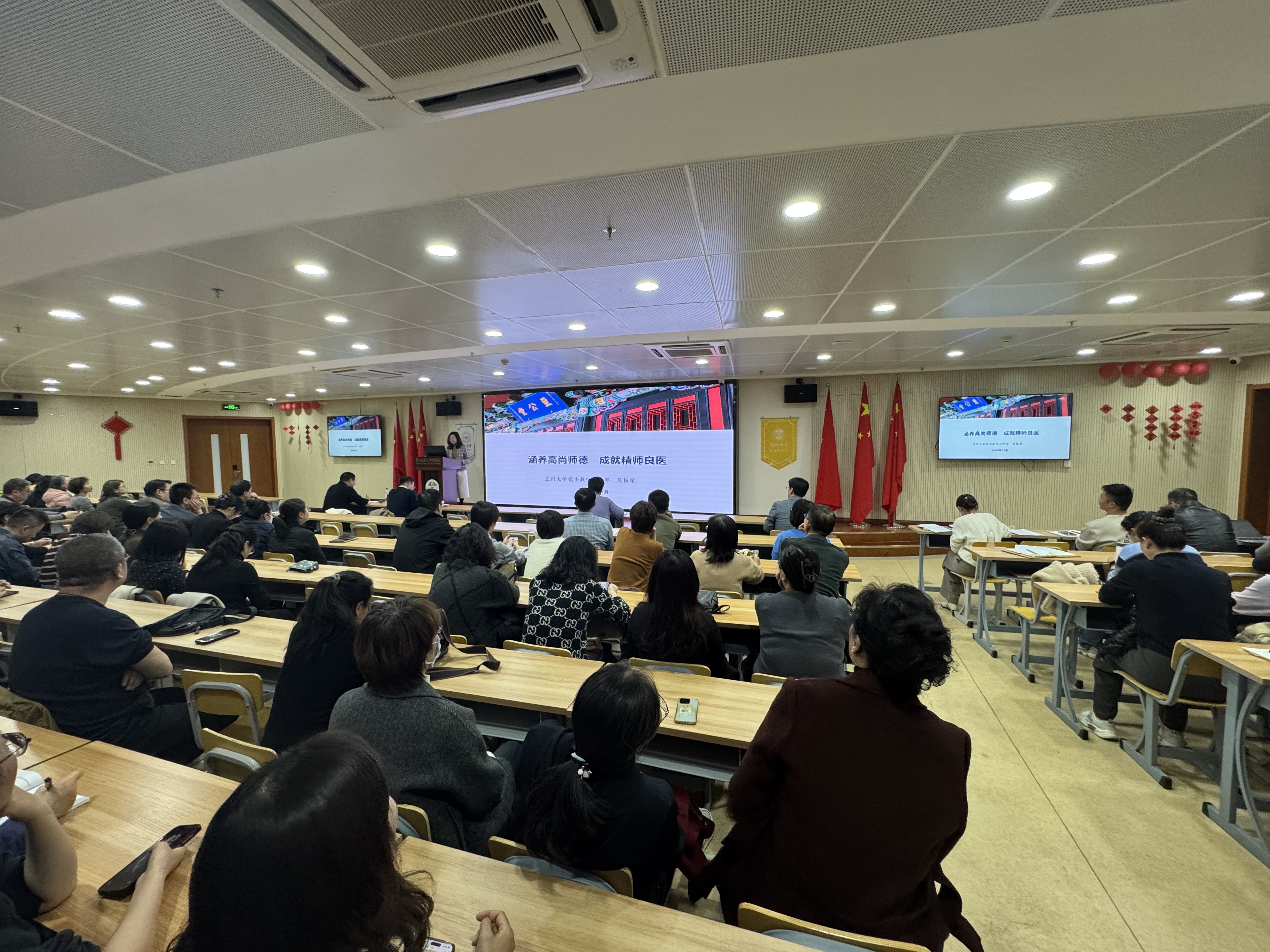 学校党委教师工作部吴振荣以“涵养高尚师德、成就精师良医”为主题开展了师德师风专题教育,系统解读了师德师风建设的根本遵循、相关法纪法规,结合负面典型案例深化警示意义,阐释了师德师风建设长效机制构建要点,引导全体教职工强化师德修养。参会人员共同观看了警示教育视频,进一步强化了思想自觉,筑牢了师德师风建设思想根基。