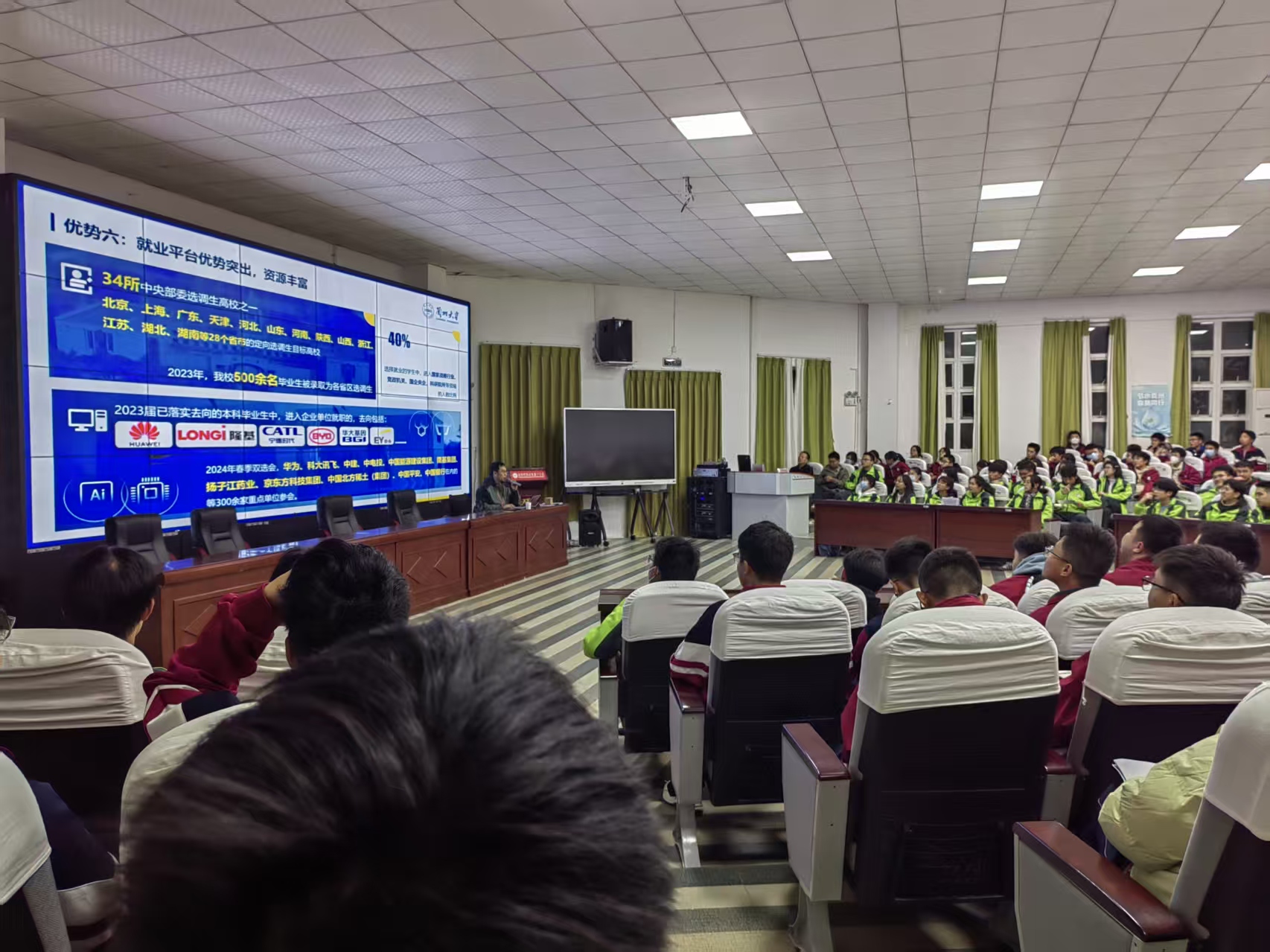 在招生宣讲和座谈环节,招生组成员围绕学生关心的优势学科、人才培养、招生位次、专业学习及生活环境等,与中学负责人、教师和学生进行了深入的交流和探讨,解答同学们在备考、志愿填报、专业选择等方面的疑问,帮助学生明确目标、科学规划未来。